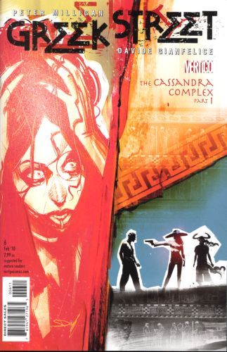 Written by Peter Milligan Art by Davide Gianfelice Cover by Davide Furno 'GREEK STREET roars out of the gate, asserting itself fairly quickly as something special.' - NEWSARAMA 'The book has a great atmosphere?sex, violence, mystery, and?all the makings to be a good - even great - underworld drama.' - AINT IT COOL NEWS 'A reminder that some stories are too true and too dangerous to ever die. GREEK STREET crackles with Promethean fire.' - Grant Morrison A shocking new drama unfolds on the blood, tear and fluid-stained stage of Greek Street as disturbed mother-killer Eddie and aristo visionary, Sandy, try to get to London where Dedalus investigates a suicide and an urban witch tries to get through to a monster. Part 1 of 'Cassandra Complex,' the all-new storyline to the intense and irreverent GREEK STREET. On sale December 2 o 32 pg, FC, $2.99 US MATURE READERS