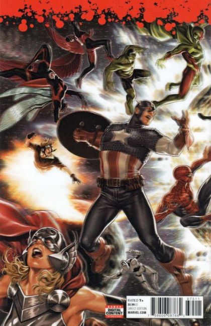 NO SURRENDER Part 1 AVENGERS goes WEEKLY for the stunning sixteen-part saga that will write the end of an era! The Earth has been STOLEN! The sky burns while mysterious cosmic objects crash down from above, wreaking havoc across the world! The Avengers are the last line of defense between Earth and the mysterious forces threatening to tear it apart. It's time to ASSEMBLE! The teams you know and love from AVENGERS, UNCANNY AVENGERS, U.S.AVENGERS and OCCUPY AVENGERS come together to face a threat beyond any they've faced before in a weekly epic adventure that will define the future of Earth's Mightiest Heroes! Rated T+