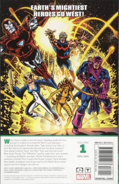 Earth's Mightiest Heroes go West! When Vision creates a second squad, Hawkeye grabs the first Quinjet to California to lead the West Coast Avengers - including Mockingbird, Wonder Man, Tigra and an Iron Man or two! But will local vigilante the Shroud join the West Coasters? How about Firebird, Hank "Ant-Man" Pym and the Ever-Lovin' Blue-Eyed Thing?! The "Whackos" quickly make their own enemies - including the Blank, Graviton, Master Pandemonium and a villainous Goliath! Plus: Kraven the Hunter targets Tigra! Wonder Man battles Sandman! And Vision and Scarlet Witch lend a hand against the Grim Reaper and Ultron! Collecting WEST COAST AVENGERS (1984) #1-4, IRON MAN ANNUAL #7, AVENGERS (1963) #250, WEST COAST AVENGERS (1985) #1-7, VISION AND THE SCARLET WITCH (1985) #1-2 and WONDER MAN (1986) #1.