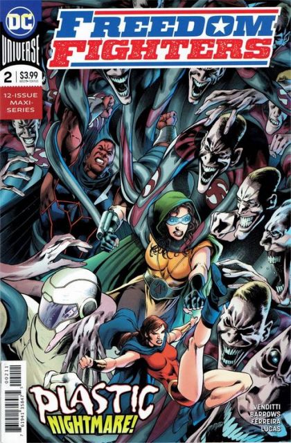 The Freedom Fighters go public in present-day Nazi America! It's been 50 years of fascist rule in the U.S. under Hitler and his heirs, and frankly, everyone's had enough. A new Freedom Fighters team makes a very public debut in hopes of rallying the people and re-igniting the long-dormant American spirit. Phantom Lady, Black Condor, Doll Girl and Human Bomb strike a blow against the Gestapo's Iron Police Force, but will it be enough to summon the long-lost Uncle Sam from retirement?