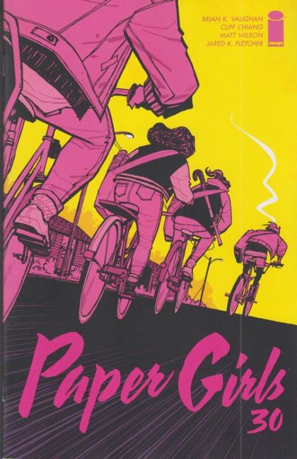 SERIES FINALE! DOUBLE-SIZED FINAL ISSUE! It's all been leading up to this-the deeply emotional series finale of PAPER GIRLS! No spoilers here, but our epic conclusion features 44 PAGES OF ORIGINAL STORY WITH NO ADS, and we can't wait for you to read it. Thanks so much for riding with us! ~ Brian, Cliff, Matt & Jared