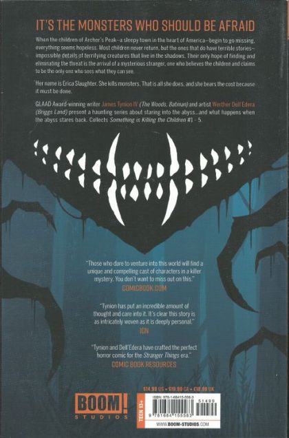 When the children of Archer's Peak begin to go missing, everything seems hopeless. The few children that return alive have terrible stories-impossible details of terrifying creatures that live in the shadows. Their only hope is the arrival of a mysterious stranger, one who believes the children and claims to be the only adult who sees what they can see. Her name is Erica Slaughter. She kills monsters. That is all she does, and she bears the cost because it must be done. GLAAD Award-winning writer James Tynion IV (The Woods, Batman: Detective Comics) teams with artist Werther Dell'Edera (Briggs Land) for a haunting series about staring into the abyss... and what happens when the abyss stares back. Collects issues #1-5.