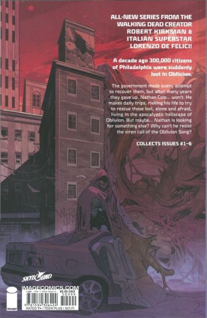 A decade ago, 300,000 citizens of Philadelphia were suddenly lost in Oblivion. The government made every attempt to recover them, but after many years they gave up. Nathan Cole... won't. He makes daily trips, risking his life to try and rescue those still living in the apocalyptic hellscape of Oblivion. But maybe Nathan is looking for something else. Why can't he resist the siren call of the Oblivion Song? Collects OBLIVION SONG BY KIRKMAN & DE FELICI #1-6