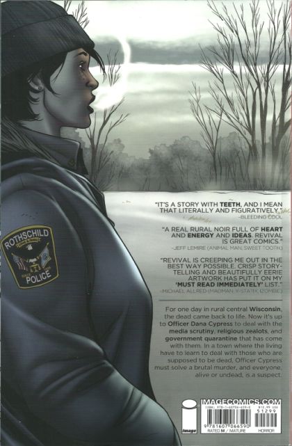 For one day in rural central Wisconsin, the dead came back to life. Now it's up to Officer Dana Cypress to deal with the media scrutiny, religious zealots, and government quarantine that has come with them. In a town where the living have to learn to deal with those who are supposed to be dead, Officer Cypress must solve a brutal murder, and everyone, alive or undead, is a suspect. The sell-out hit series created by NYT Bestselling author TIM SEELEY and Eisner winning artist MIKE NORTON is collected with bonus material! Collects REVIVAL 1-5 and the FREE COMIC BOOK DAY short story