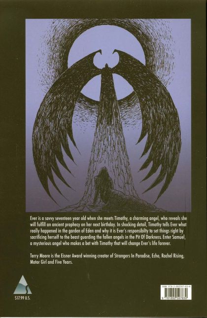 Ever is a savvy seventeen year old when she meets Timothy, a sophisticated charmer, who soon reveals she will fulfill an ancient prophecy on her next birthday. When Ever realizes Timothy is a fallen angel and her destiny is to be a human sacrifice at the Gate of Darkness, she runs. With Timothy on her trail, Ever searches for answers and learns the terrible truth about the prophecy and why she must fight like hell to stop it. Ever: The Way Out is a complete story in one graphic novel, written and drawn by Eisner Award Winning cartoonist Terry Moore.