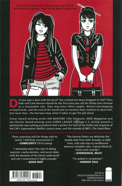 Included in Book Riot's Best Comics of 2018 Did you sign a deal with the devil? Has a loved one been dragged to Hell? Then Kate and Cate Harrow should be the first ones you call for timely soul removal at a reasonable rate. This collection is perfect for fans of case-solving procedurals like Veronica Mars, Netflix's Jessica Jones, and the CW's Supernatural, and introduces readers to the Harrows, who have to deal with the end of the world, fallen angels, demon worshipping ex-boyfriends, and their Mother. Collects EXORSISTERS #1-5