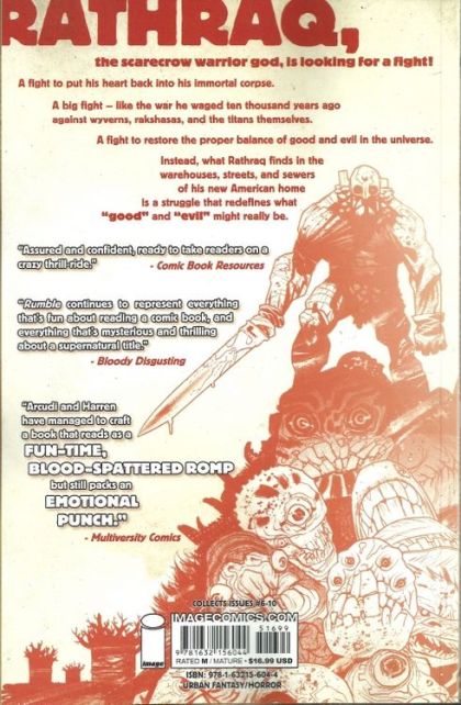 The second volume of RUMBLE delves deeper into the past and present of Rathraq, Scarecrow Warrior God, as writer JOHN ARCUDI (B.P.R.D., A God Somewhere) and artist JAMES HARREN (Conan, Deadpool) keep the weirdness and the action at a high level. An expanded sketchbook section and pin-ups by the best talents in comics round out a killer book! 'Thanks for... RUMBLE. I like it a lot. In fact I wish it were my project.'-RICHARD CORBEN Collects RUMBLE #6-10