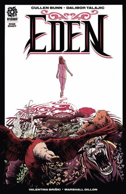 Tattoo artist Niles lives his life in a kind of daze. Minute after minute, he muddles through the repetitive moments of his job, his life and his guilt. All that changes when Eden walks through the doors of the tattoo shop. She's looking for something...different...and she finds it with Niles. But Eden is a woman surrounded by deep mysteries...not the least of which is how and why her new tattoos vanish after only a few days. As Niles learns more about Eden, he is driven to fathomless depths of both love and horror. A prestige format "One-Shock" featuring top creative talent, EDEN is a harrowing hor-ror/romance conceived and written by Cullen Bunn (PIECEMEAL, DARK ARK, KNIGHTS TEM-PORAL, BROTHERS DRACUL), drawn by Dalibor Talajic (WITCH HAMMER, RELAY) and colored by Valentina Bri ki. Be prepared to accompany the notions of love, creation and heartbreak to terrifying places.