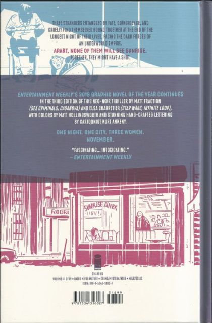 Three strangers entangled by fate, coincidence, and cruelty find themselves at the end of the longest night of their lives, bound together against the dark forces of...well-fate, coincidence, and cruelty. Apart, none of them will see sunrise; together they might have a shot, in this thriller by MATT FRACTION & ELSA CHARRETIER, with colors by MATT HOLLINGSWORTH and stunning hand-crafted lettering by cartoonist KURT ANKENY. One night. One city. Three women. NOVEMBER.