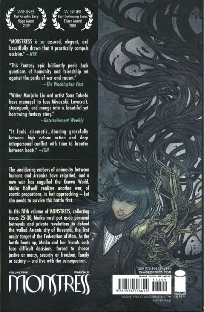 The next volume in the bestselling Eisner, Hugo, Harvey & British Fantasy Award-winning series by MARJORIE LIU and SANA TAKEDA! The long-dreaded war between the Federation and Arcanics is about to explode. Maika must choose her next steps: will she help her friends, or strike out on her own? COLLECTS MONSTRESS #25-30