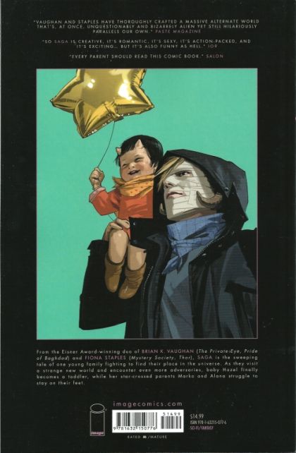 The #1 New York Times bestseller returns! Visit new planets, meet new adversaries and explore a very new direction, as Hazel becomes a toddler while her family struggles to stay on their feet. Collects SAGA #19-24