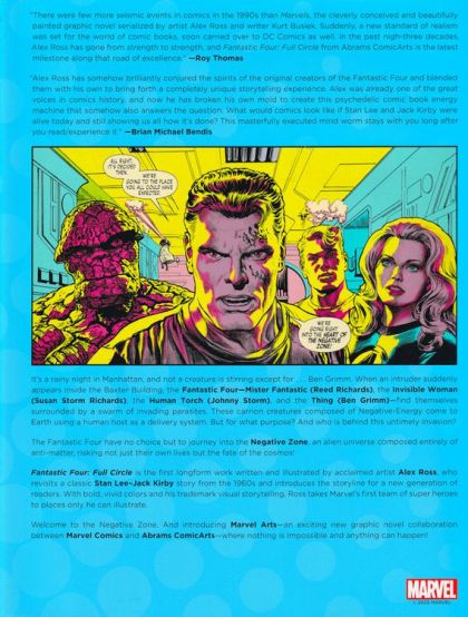 A PREVIEWS Exclusive! It's a rainy night in Manhattan, and not a creature is stirring except for... Ben Grimm. When an intruder suddenly appears inside the Baxter Building, the Fantastic Four - Mister Fantastic (Reed Richards), the Invisible Woman (Susan Storm Richards), the Human Torch (Johnny Storm), and The Thing (Ben Grimm) - find themselves surrounded by a swarm of invading parasites. These carrion creatures composed of Negative-Energy come to Earth using a human host as a delivery system. But for what purpose? And who si behind this untimely invasion? The Fantastic Four have no choice but to journey into the Negative Zone, an alien universe composed entirely of anti-matter, risking not just their own lives but the fate of the cosmos! Fantastic Four: Full Circle is the first longform work written and illustrated by acclaimed artist Alex Ross, who revisits a classic Stan Lee-Jack Kirby story from the 1960s and introduces the storyline for a new generation of readers. With bold, vivid colors and his trademark visual storytelling, Ross takes Marvel's first team of super heroes to places only he can illustrate. Welcome to the Negative Zone. And introducing Marvel Arts - an exciting new graphic novel collaboration between Marvel Comics and Abrams ComicArts - where nothing is impossible and anything can happen! This PREVIEWS exclusive limited run of 3,000 copies includes a bonus removable Alex Ross Fantastic Four: Full Circle print in a special slipcase. Please see the June PREVIEWS for the regular edition, scheduled for an August on sale date.