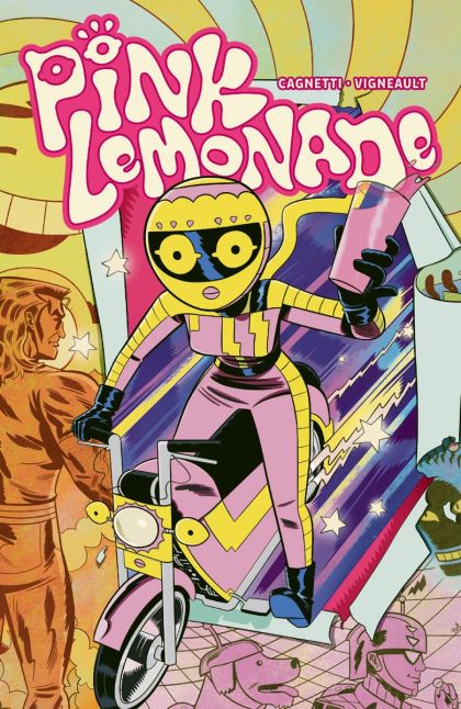 Mysterious past! Colorful costume! Altruistic outlook! Zippy motorcycle! And one very overactive imagination! Meet PINK LEMONADE-the new hero on the scene! She dreams of doing big things, but ultimately, she'll settle for just helping where she can. But when Pink Lemonade accidentally crashes into the set of the next Rex Radical blockbuster, she'll take an unexpected leap into the spotlight...and will soon find herself confronted by a series of increasingly threatening doppelgängers, extraterrestrial fanboys, and nefarious corporate machinations. Collecting PINK LEMONADE #1-6 in one complete volume.