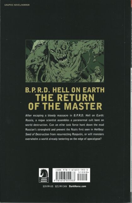 A rogue scientist who escaped the bloody massacre in B.P.R.D. Hell on Earth: Russia assembles a paranormal cult bent on world destruction. Can an elite B.P.R.D. task force hunt down the mad Russian's stronghold in time, or will monsters overwhelm a world already teetering on the edge of apocalypse? Collects B.P.R.D. Hell on Earth: The Return of the Master #1-#5.