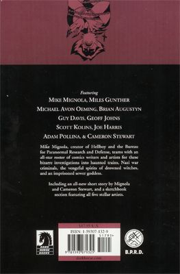 by Mike Mignola, Miles Gunther, Michael Avon Oeming, Brian Augustyn, Guy Davis, Geoff Johns, Sott Kolins, Joe Harris, Adam Pollina, and Cameron Stewart This collection of 2003?s Bureau for Paranormal Research and Defense one-shots kicks of with a goddess imprisoned in a story by Bastard Samurai creative team Miles Gunter & Michael Avon Oeming (Bastard Samurai), joined by series creator Mike Mignola. Guy Davis, artist of the new B.P.R.D. series teams, with Brian Augustyn (Gotham by Gaslight). The Flash creative team Geoff Johns & Scott Kolins team for their first Dark Horse work, and Joe Harris, screenwriter of Darkness Falls, and his X-Men collaborator Adam Pollina reunite for Abe Sapien?s weirdest adventure yet. Also includes a brand new short story by Mignola and Cameron Stewart.