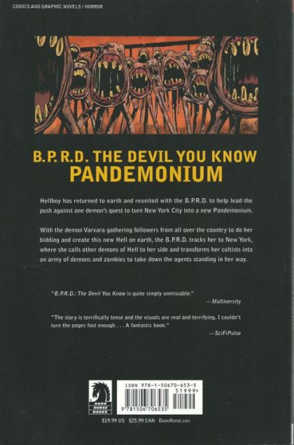 The final story in Mike Mignola's B.P.R.D. epic, The Devil You Know sees longtime characters Hellboy, Liz Sherman, Abe Sapien, and others in the final battles to save mankind. Pandemonium collects B.P.R.D.: The Devil You Know #6-#10.