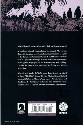 Mike Mignola (W/Cover), John Arcudi (W), Scott Allie (W), Richard Corben (A), Ben Stenbeck (A), Karl Moline (P), Guy Davis (A), Andy Owens (I), and Dave Stewart (C) In these terrifying tales of witchcraft and the undead, Abe, Roger, Liz, and Johann learn the ropes as agents of the Bureau For Paranormal Research and Defense! Abe copes with survivor's guilt, Roger goes on his first adventure with Hellboy, Liz tells the story of how she killed her family, and Johann Kraus dies!