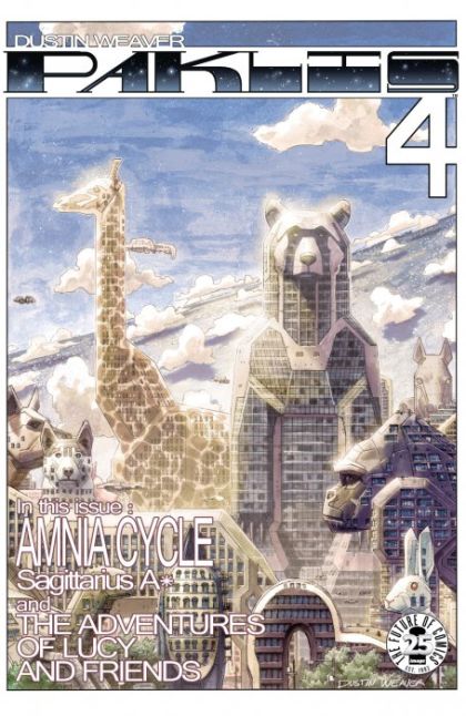 The city of Zoohurst is the pinnacle of architectural ambition, the spirit of the Shadow Zone, and the home of Shana Tyson, whose name was uttered on a mysterious transmission in the deep of space. Zoohurst is also Tara's next destination in her search for Amnia. But the massive animal buildings of Zoohurst are not the only architectural wonders to behold in this issue. In a collaboration between father and daughter, DUSTIN & LUCY WEAVER bring you "The Adventures of Lucy and Friends" where a group of friends visit the very strange Wing Store.