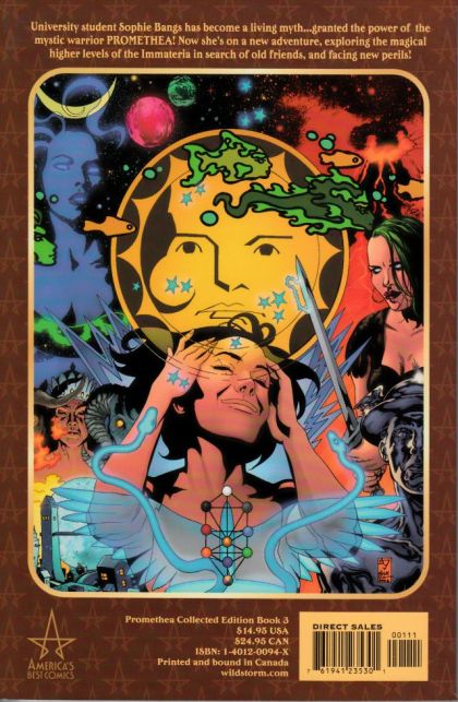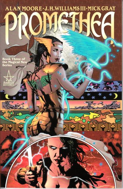 Written by Alan Moore; Art and cover by J.H. Williams III & Mick Gray The third thrilling collection of the critically acclaimed, award-winning PROMETHEA is back, offered as a softcover version of the original hardcover! PROMETHEA BOOK THREE is a 224-page trade paperback from AMERICA'S BEST COMICS reprinting PROMETHEA #13-18, written by Alan Moore with art and cover by J.H. Williams III & Mick Gray. Featuring the first half of a cosmic road trip, this volume finds Promethea and Barbara traveling an unlikely path. Their wanderings take them through the many realms of Heaven and Hell, visiting manifestations of great visions and visionaries. Meanwhile, back on Earth, Stacia is the acting Promethea - protecting and serving the people of New York while Promethea is away. Is she up to the task?