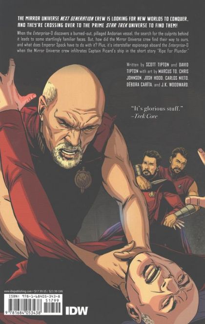 The Mirror Universe Next Generation crew is looking for new worlds to conquer, and they're crossing over to the Prime Star Trek Universe to find them! When the Enterprise-D discovers a burned-out, pillaged Andorian vessel, the search for the culprits behind it leads to some startlingly familiar faces. But, how did the Mirror Universe crew find their way to ours, and what does Emperor Spock have to do with it? Plus, it's interstellar espionage aboard the Enterprise-D when the Mirror Universe crew infiltrates Captain Picard's ship! "An absolute blast for Star Trek fans."-ComicBook.com