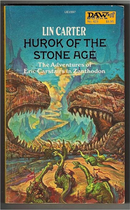 Beneath the vast and trackless Sahara there lies a cavern so immense the whole nations could be swallowed up within it. There reside in the eternal subterranean glow the last of the Cro-magnons and their rivals the Neanderthals, lost remnants of ancient surface empires, and hordes of beasts and beings from all the ages of prehistory.Into this world, Zanthodon, penetrated the soldier-of-fortune Eric Carstairs - and immediately became embroiled in tremendous adventures!Hurok the Neanderthal had learned the meaning of friendship from Carstairs and in return would lead an expedition of cavemen to the dinosaur-guarded city of Zar where Carstairs had fallen captive to a sadistic queen and her scheming advisors.High adventure as only Lin Carter can tell it!