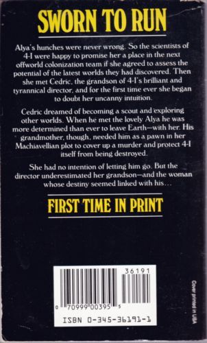 Alya's hunches were never wrong. So the scientists of 4-I were happy to promise her a place in the next offworld colonization team if she agreed to assess the potential of the latest worlds they had discovered. Then she met Cedric, the grandson of 4-I's brilliant and tyrannical director, and for the first time ever she began to doubt her uncanny intuition. Cedric dreamed of becoming a scout and exploring other worlds. When he met the lovely Alya he was more determined than ever to leave Earth -- with her. His grandmother, though, needed him as a pawn in her Machiavellian plot to cover up a murder and protect 4-I itself from being destroyed. She had no intention of letting him go. But the director underestimated her grandson -- and the woman whose destiny seemed linked with his . . .