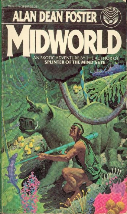 It was a world with no name, a brutally hot planet circling close to its sun somewhere in an obscure star-system. It did not support life. Rather, on its surface, like exploded, erupted, multiplied and throve beyond imagination. One very important bit of life inhabiting the orb was Born, a descendant of a long-forgotten colonization ship forced down there centuries ago. Born, like the rest of his tribesmen, lived the live of a savage - there was no other way to survive on this planet where weird growth thickly blanketed the entire surface. The perilous jungle was so dense that it was divided into seven individual levels - each with its own particular dangers. Born's clan had chosen a huge tree branch on the third level as their dwelling place. Only the bravest, like Born himself, ever made the harrowing climb to the top to feel the warm, dry rays of the sun. But Born had no time for such pleasures when the strangers landed. Born and his Furcot, an intelligent bearlike native species with three eyes and green fur, had risen early to hunt for food. The morning mist had all but vanished when a thunderous crash suddenly cut the jungle's stillness. Hurrying to investigate, Born found the charred wreckage of a flying machine and a pair of shaken but uninjured pilots - both human like himself. Taking them back to Home Tree, Born could scarecely have known that they were just two crew members from a giant starship that had landed illegally many miles away. Their exploit the planet's boundless resources. Their to do so - at any cost.