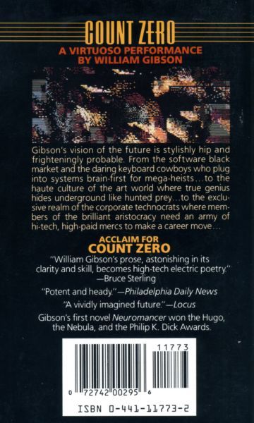 Turner, corporate mercenary, wakes in a reconstructed body, a beautiful woman by his side. Then Hosaka Corporation reactivates him for a mission more dangerous than the one he's recovering from: Maas-Neotek's chief of R&D is defecting. Turner is the one assigned to get him out intact, along with the biochip he's perfected. But this proves to be of supreme interest to certain other parties--some of whom aren't remotely human. Bobby Newmark is entirely human: a rustbelt data-hustler totally unprepared for what comes his way when the defection triggers war in cyberspace. With voodoo on the Net and a price on his head, Newmark thinks he's only trying to get out alive. Until he meets the angel. A stylish, streetsmart, frighteningly probable parable of the future.