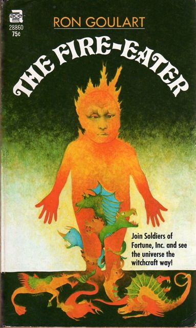 Great scaly dragons roamed the dunes -- unreal beasts resurrected daily in the mirage belt. Illusions created by atmospheric manipulation -- and by magic. For although Esmeralda was a backward world, it had a very real and unusual native art -- witchcraft! Raker of Soldiers of Fortune, Inc. was being paid well to track down the planet's deadly Fire-Eater -- who visited flaming death upon distant enemies. But Raker found himself battling not one wizard, but a whole pack of sorcerers, plague makers, lycanthropes, and fire assassins. And the ones who couldn't kill him with words went at him with battle axes, swords and the like. Raker began to wonder if even a great fortune was going to be just compensation if he couldn't live long enough to collect....