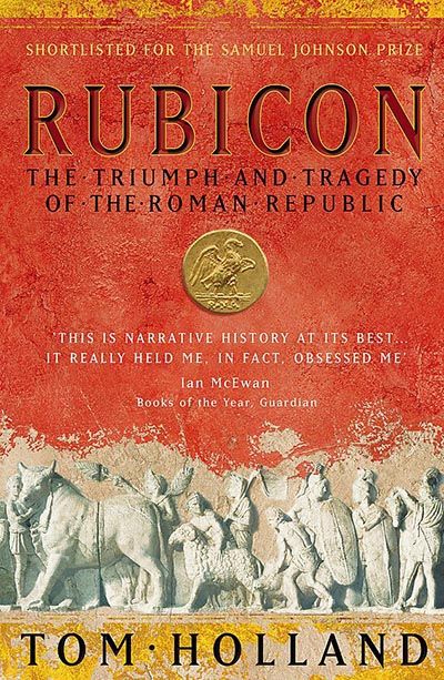 In 49 B.C., the seven hundred fifth year since the founding of Rome, Julius Caesar crossed a small border river called the Rubicon and plunged Rome into cataclysmic civil war. Tom Holland' s enthralling account tells the story of Caesar' s generation, witness to the twilight of the Republic and its bloody transformation into an empire. From Cicero, Spartacus, and Brutus, to Cleopatra, Virgil, and Augustus, here are some of the most legendary figures in history brought thrillingly to life. Combining verve and freshness with scrupulous scholarship, "Rubicon "is not only an engrossing history of this pivotal era but a uniquely resonant portrait of a great civilization in all its extremes of self-sacrifice and rivalry, decadence and catastrophe, intrigue, war, and world-shaking ambition.