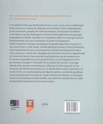 Product DescriptionJérôme Bosch (1450-1516) a vécu et travaillé à Bois-le-Duc, où il a créé des oeuvres énigmatiques peuplées d'êtres étranges, de monstres fantastiques et de cauchemars inquiétants inspirés de ses thèmes de prédilection : la séduction, le péché et le Jugement dernier. Ce magnifique ouvrage paraît en marge de la plus grande exposition jamais dédiée à son travail. Les six chapitres du livre retracent sa carrière, traitant en détails des thèmes variés comme la Perigrinatio vitae de Bosch, Bosch et la vie du Christ, son rôle en tant que concepteur d'estampes, ses peintures de saints ou le Jardin des délices. Ce livre, qui a été supervisé par l'équipe du BRCP, est magnifiquement illustré grâce à de nouvelles photographies.From the Back CoverJérôme Bosch (1450-1516) a vécu et travaillé à Bois-le-Duc, où il a créé des oeuvres énigmatiques peuplées d'êtres étranges, de monstres fantastiques et de cauchemars inquiétants inspirés de ses thèmes de prédilection : la séduction, le péché et le Jugement dernier. Ce magnifique ouvrage paraît en marge de la plus grande exposition jamais dédiée à son travail. Les six chapitres du livre retracent sa carrière, traitant en détails des thèmes variés comme la Perigrinatio vitae de Bosch, Bosch et la vie du Christ, son rôle en tant que concepteur d'estampes, ses peintures de saints ou le Jardin des délices. Ce livre, qui a été supervisé par l'équipe du BRCP, est magnifiquement illustré grâce à de nouvelles photographies.