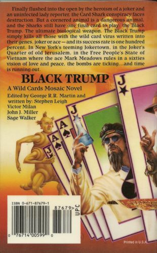 Finally flushed into the open by the heroism of a joker and an uninfected lady reporter, the Card Shark conspiracy faces destruction. But a cornered animal is a dangerous animal, and the Sharks still have one final card to play: the Black Trump. The ultimate biological weapon. The Black Trump simply kills all those with the wild card virus written into their genes, joker or ace -and its success rate is one hundred percent. In New York's teeming Jokertown, in the Joker's Quarter of old Jerusalem, in the Free People's State of Vietnam where the ace Mark Meadows rules in a sixties vision of love and peace, the bombs are ticking...and time is running out.