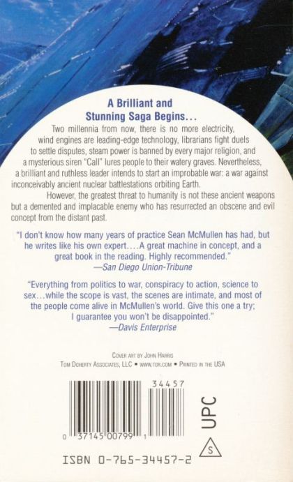 The great Calculor of Libris was forced to watch as Overmayor Zarvora had four of its components lined up against a wall and shot for negligence. Thereafter, its calculations were free from errors, and that was just as well-for only this strangest of calculating machines and its two thousand enslaved components could save the world from a new ice age. And all the while a faint mirrorsun hangs in the night sky, warning of the cold to come. In Sean McMullen's glittering, dynamic, and exotic world two millennia from now, there is no more electricity, wind engines are leading-edge technology, librarians fight duels to settle disputes, steam power is banned by every major religion, and a mysterious siren "Call" lures people to their death. Nevertheless, the brilliant and ruthless Zarvora intends to start a war in space against inconceivably ancient nuclear battle stations. Unbeknownst to Zarvora, however, the greatest threat to humanity is neither a machine nor a force but her demented and implacable enemy Lemorel, who has resurrected an obscene and evil concept from the distant past: Total War. Souls in the Great Machine is the first volume of Sean McMullen's brilliant future history of the world of Greatwinter