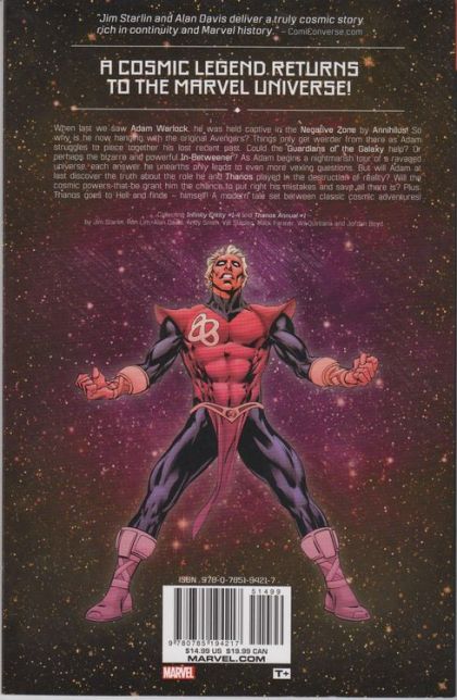 When last we saw Adam Warlock, he was a captive of Annihilus of the Negative Zone. So where do we find him now? Hanging with the Original Avengers? Then things start getting weird. But what else would you expect from the cosmic team of Jim Starlin and Alan Davis? Guest-starring the Guardians of the Galaxy.COLLECTING: The Infinity Entity 1-4, Thanos Annual 1