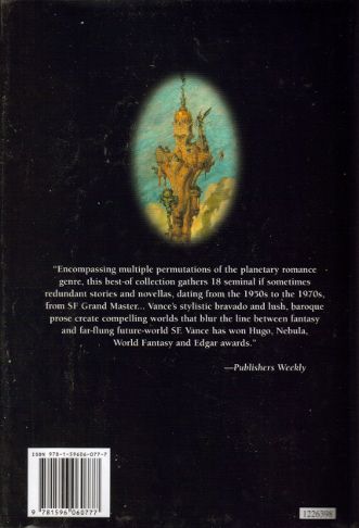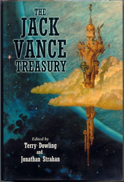 Jack Vance is a national treasure. One of the 20th century’s preeminent science fiction and fantasy writers, he has done more than any other author to define one of the genre’s principal forms, the planetary adventure. But whether he’s writing sf, fantasy or mystery, his distinctive storytelling voice displays an impressive gift for language and dialogue, a fine eye for world-building detail, and a keen sense of irony and the evanescence of human existence. As Dowling and Strahan say in the introduction to this volume, Jack Vance has a way of “putting us into situations where our humanity becomes the thing in focus, measured against alien overlords, exotic worlds and different cultures.” Could be why Vance’s works have claimed the Edgar, Hugo, Nebula and World Fantasy Awards, and why wordsmiths like Gene Wolfe, Harlan Ellison, Dan Simmons and George R.R. Martin credit his influence on their work. Now, the very best of the Grand Master’s shorter works has been collected in this landmark volume, a retrospective spanning the seven decades of his remarkable career. Here are “The Dragon Masters,” a Hugo winner about the rivalry between two very different men on what may be the last planet of free humans, where dragons are bred to meet human needs, just as humans are bred for the needs of alien abductors…. “Sail 25” (one of Vance’s personal favorites), which was one of the first tales to take readers into space on a solar sailship—a vessel manned by an untried crew of cadets…. the Hugo-nominated “The Miracle Workers,” about an alien world where humans have carved out feudal kingdoms for themselves, armed with backward technology, magic they only dimly understand and a few relics of higher technology 1600 years old…. “The Moon Moth,” which asks the xenological question, “how do you catch a criminal in a society where everyone goes masked?”… And the Hugo- and Nebula-winning novella, “The Last Castle,” in which a formerly submissive group of non-human slaves revolt against their human masters, only to bring about the very thing they fear most. Add to this roster stories from the Dying Earth sequence featuring Cugel the Clever, a story starring that most urbane of interstellar agents, Magnus Ridolph, a biographical sketch of and commentaries on each story by the author, and a foreword by long-time fan George R.R. Martin, and you have a collection to be cherished.