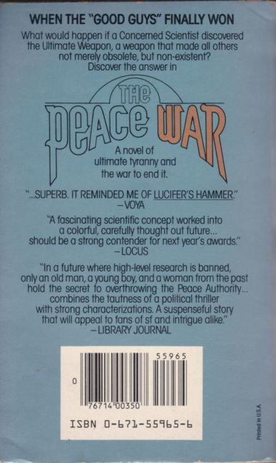 The novel that garnered Vinge his first "Best Novel" Hugo Finalist nomination, back in print after thirteen years. With a combination of hard-SF concepts, tight plotting, and appealing characters, Vinge tells a now-classic story of the Few triumphing over the Many. The Peace Authority, wielding a new state-of-the-art weapon, takes over the world, and claims to be "maintaining the peace" while really controlling the scattered survivors of the new world. The inventor of their weapon, which was never meant to be a weapon at all, leads a resistance of high-tech "tinkers" who fight to defeat the "Peace."