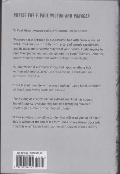 Two secret societies vie for control of the ultimate medical miracle―Panacea―in the latest novel by New York Times bestselling author F. Paul Wilson. Medical examiner Laura Fanning has two charred corpses and no answers. Both bear a mysterious tattoo but exhibit no known cause of death. Their only connection to one another is a string of puzzling miracle cures. Her preliminary investigation points to a cult in the possession of the fabled panacea―the substance that can cure all ills―but that's impossible. Laura finds herself unknowingly enmeshed in an ancient conflict between the secretive keepers of the panacea and the equally secretive and far more deadly group known only as 536, a brotherhood that fervently believes God intended for humanity to suffer, not be cured. Laura doesn't believe in the panacea, but that doesn't prevent the agents of 536 from trying to kill her. A reclusive, terminally ill billionaire hires Laura to research the possibility of the panacea. The billionaire's own body guard, Rick Hayden, a mercenary who isn't who he pretends to be, has to keep her alive as they race to find the legendary panacea before the agents of 536 can destroy it.