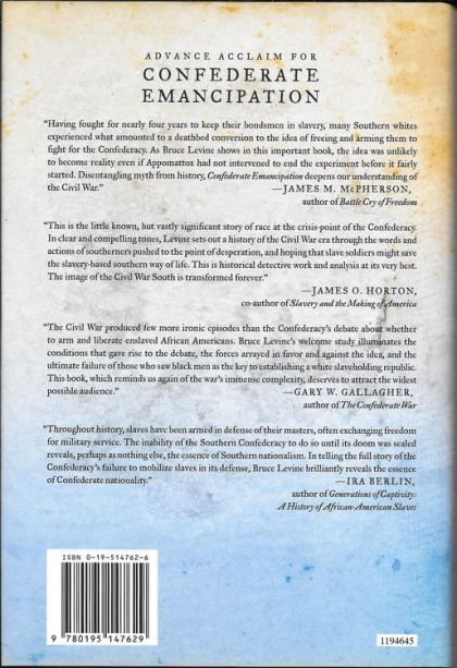 In early 1864, as the Confederate Army of Tennessee licked its wounds after being routed at the Battle of Chattanooga, Major-General Patrick Cleburne (the "Stonewall of the West") proposed that "the most courageous of our slaves" be trained as soldiers and that "every slave in the South who shall remain true to the Confederacy in this war" be freed.In Confederate Emancipation, Bruce Levine looks closely at such Confederate plans to arm and free slaves. He shows that within a year of Cleburne's proposal, which was initially rejected out of hand, Jefferson Davis, Judah P. Benjamin, and Robert E. Lee had all reached the same conclusions. At that point, the idea was debated widely in newspapers and drawing rooms across the South, as more and more slaves fled to Union lines and fought in the ranks of the Union army. Eventually, the soldiers of Lee's army voted on the proposal, and the Confederate government actually enacted a version of it in March. The Army issued the necessary orders just two weeks before Appomattox, too late to affect the course of the war. Throughout the book, Levine captures the voices of blacks and whites, wealthy planters and poor farmers, soldiers and officers, and newspaper editors and politicians from all across the South. In the process, he sheds light on such hot-button topics as what the Confederacy was fighting for, whether black southerners were willing to fight in large numbers in defense of the South, and what this episode foretold about life and politics in the post-war South.Confederate Emancipation offers an engaging and illuminating account of a fascinating and politically charged idea, setting it firmly and vividly in the context of the Civil War and the part played in it by the issue of slavery and the actions of the slaves themselves.
