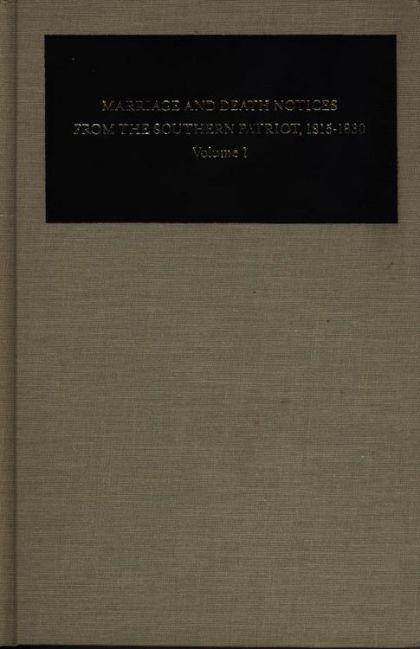 By: Theresa Wilson & Janice Grimes, Pub. 1982, 262 pages, Index, soft cover, ISBN #0-89308-278-1.The Southern Patriot was a newspaper that began publication in Charleston, South Carolina in 1815 and was published through 1848. A unique research issue for the state of South Carolina is that vital records were not officially keep until 1911. So for the researcher, you must turn to newspapers in order to locate those elusive vital records such as: births, death, & marriages. This book consists of the marriage and death notices as they are found in this newspaper. Although the Southern patriot was published in Charleston, the marriage and death notices are not limited to this area, but encompass the enite United States east of the Mississippi River. This volume will be extremely useful genealogical reference as the obituarie and marriage notices of this newspaper are given in great detail, often including dates of birth, parents and family names, as well as places of residence.