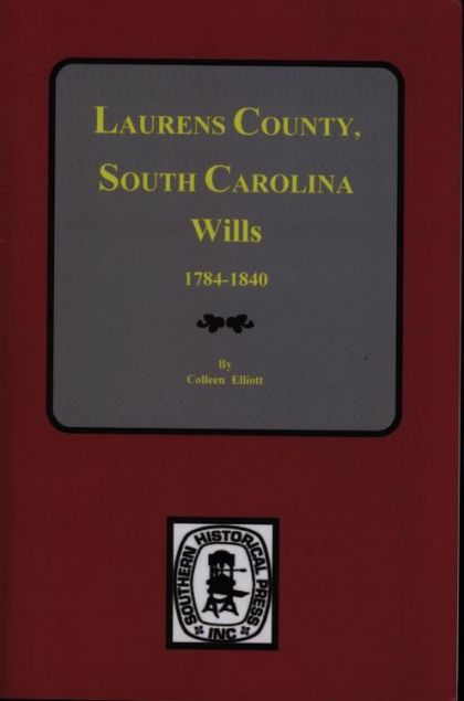By: Colleen Elliott, Pub. 1988, Reprinted 2014, 356 pages, Index, ISBN #0-89308-606-1.Laurens County was one of the major paths of migration into South Carolina as well as from S.C. to Georgia, Alabama and points west. This book contains the names of more than 34,000 persons mentioned in these records, which include wills, proven dates of wills, estate inventories, appraisals and sales, purchasers at these sales, gifts of slaves to individuals not in estate settlements, guardianship decrees, contesting of wills, executorship's revoked and their replacements, remarried widows naming new spouse, heirs vs. executors cases, in-depth instructions for "unfortunate children", names of persons from other counties, and states in some cases, and clues to where the family Bible went. This is a veritable gold mine for the genealogist because in many cases this may be the only place where a person is found mentioned in the Laurens County records.