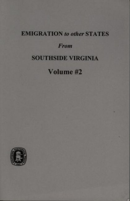 By: Katherine B. Elliott, Pub. 1966, Reprinted 2017, 138 pages, Index, ISBN #0-89308-366-6The term "Southside Virginia" is used in these two volumes to include the counties of Amelia, Appomattox, Bedford, Brunswick, Campbell, Charlotte, Dinwiddle, Franklin, Greenville, Halifax, Henry, Lunenburg, Mecklenburg, Nottoway, Patrick, Pittsylvania, Prince Edward, Prince George, and Sussex. These southside counties contributed heavily to the settlement of N.C., S.C., GA., TN., and KY. The records in these volumes are documented from the county court records, and include some notes on more than one generation of some of the listed. Though research has necessarily had to be limited, the compiler has included notes and other records deemed of value in tracing these families. Besides the states already mentioned into which people from southside VA. moved, reference is also made to these other states, viz: AR., FL., IL., IN., MS., MO., OH., PA., VA., LA., and N.Y.