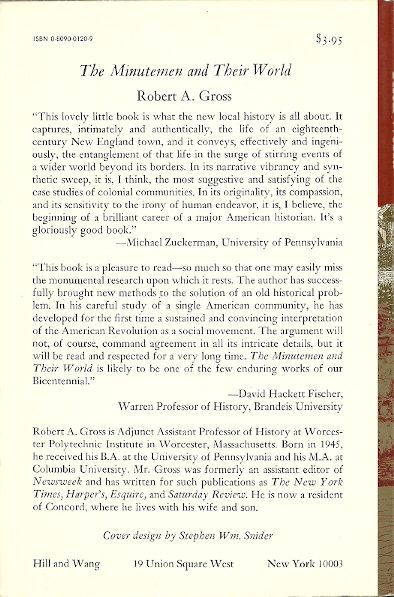 Winner of the Bancroft Prize The Minutemen and Their World, first published in 1976, is reissued now in a twenty-fifth anniversary edition with a new Foreword by Alan Taylor and a new Afterword by the author.On April 19, 1775, the American Revolution began at the Old North Bridge in Concord, Massachusetts. The "shot heard round the world" catapulted this sleepy New England town into the midst of revolutionary fervor, and Concord went on to become the intellectual capital of the new republic. The town--future home to Emerson, Thoreau, and Hawthorne--soon came to symbolize devotion to liberty, intellectual freedom, and the stubborn integrity of rural life. In The Minutemen and Their World, Robert Gross has written a remarkably subtle and detailed reconstruction of the lives and community of this special place, and a compelling interpretation of the American Revolution as a social movement.