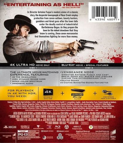 Looking to mine for gold, greedy industrialist Bartholomew Bogue seizes control of the Old West town of Rose Creek. With their lives in jeopardy, Emma Cullen and other desperate residents turn to bounty hunter Sam Chisolm for help. Chisolm recruits an eclectic group of gunslingers to take on Bogue and his ruthless henchmen. With a deadly showdown on the horizon, the seven mercenaries soon find themselves fighting for more than just money once the bullets start to fly.