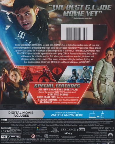 After saving the life of their heir apparent, tenacious loner Snake Eyes is welcomed into an ancient Japanese clan called the Arashikage where he is taught the ways of the ninja warrior. But, when secrets from his past are revealed, Snake Eyes' honor and allegiance will be tested – even if that means losing the trust of those closest to him.