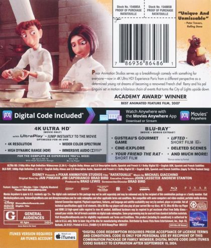 | Audio Tracks | Dolby Digital 5.1 EX [French] Dolby Digital 5.1 EX [Spanish] DTS-HD HR 5.1 [English] Dolby TrueHD 7.1 [English] Dolby Atmos [English] Descriptive Audio 2.0 [English] |