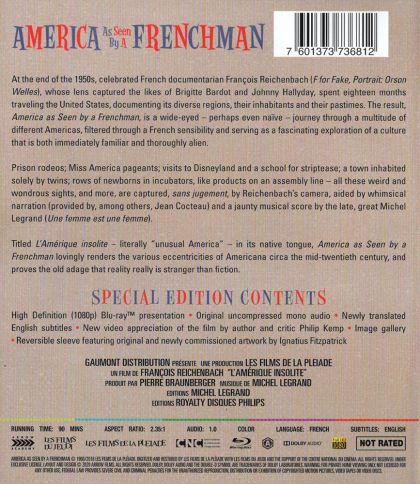At the end of the 1950s, French documentarian François Reichenbach spent eighteen months traveling the United States, documenting its diverse regions, their inhabitants, and their pastimes. The result is a journey through a multitude of different Americas, filtered through a French sensibility.