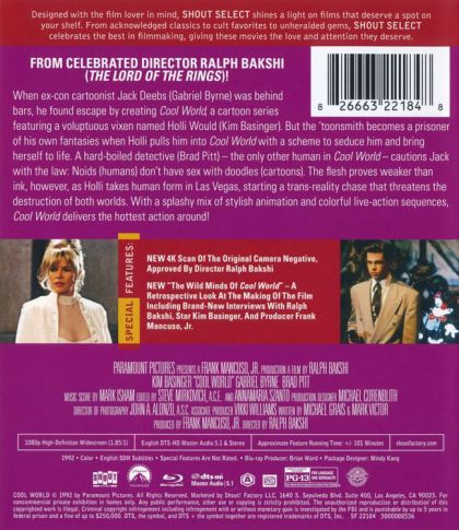 While incarcerated for murder, cartoonist Jack Deebs found escape by creating Cool World, a series featuring a voluptuous femme fatale named Holli Would. But the artist becomes a prisoner of his own fantasies when Holli transports Jack into Cool World with a scheme to seduce him and bring herself to life. Hard-boiled detective Frank Harris – the only other human in Cool World – cautions Jack with the law: Noids (humans) don't have sex with doodles (cartoons). However, flesh proves weaker than ink as Holli takes human form in Las Vegas, staring in a trans-universal chase that threatens the destruction of both worlds.