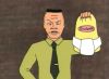 Beavis and Butt-Head struggle hugely to avoid laughing during Buzzcut's sexual education class.