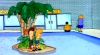 While picking up change from an empty store fountain, the duo winds up "trapped" on the pool's plastic island.