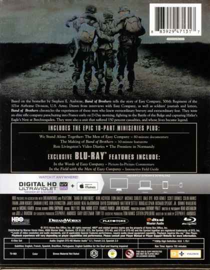 Drawn from interviews with survivors of Easy Company, as well as their journals and letters, Band of Brothers chronicles the experiences of these men from paratrooper training in Georgia through the end of the war. As an elite rifle company parachuting into Normandy early on D-Day morning, participants in the Battle of the Bulge, and witness to the horrors of war, the men of Easy knew extraordinary bravery and extraordinary fear - and became the stuff of legend. Based on Stephen E. Ambrose's acclaimed book of the same name.